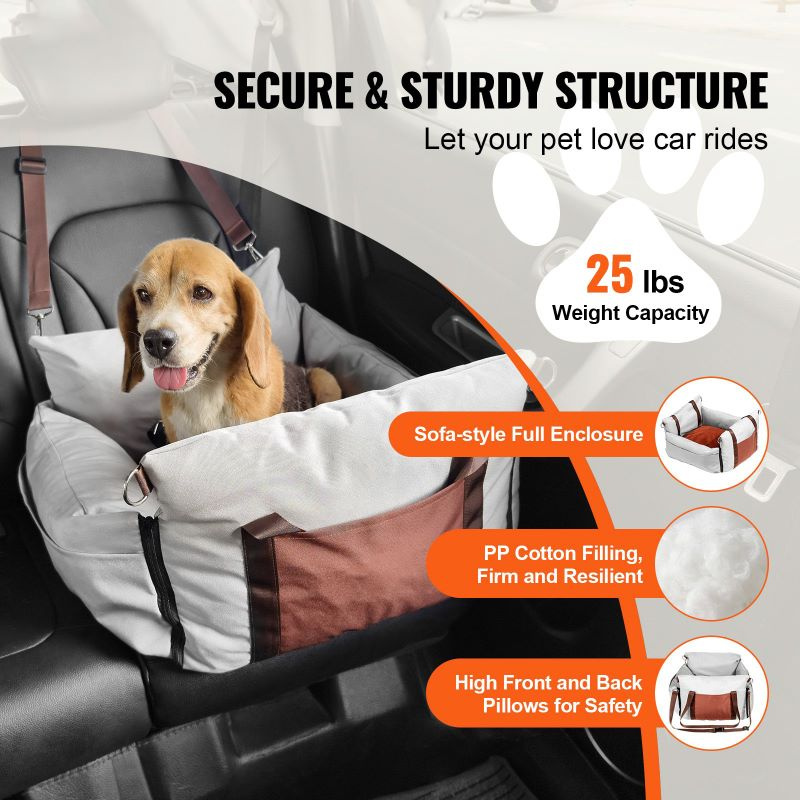 1.This dog car seat has a sofa-style, fully enclosed design with waterproof Oxford fabric and durable PP cotton filling.